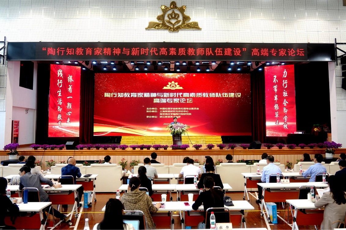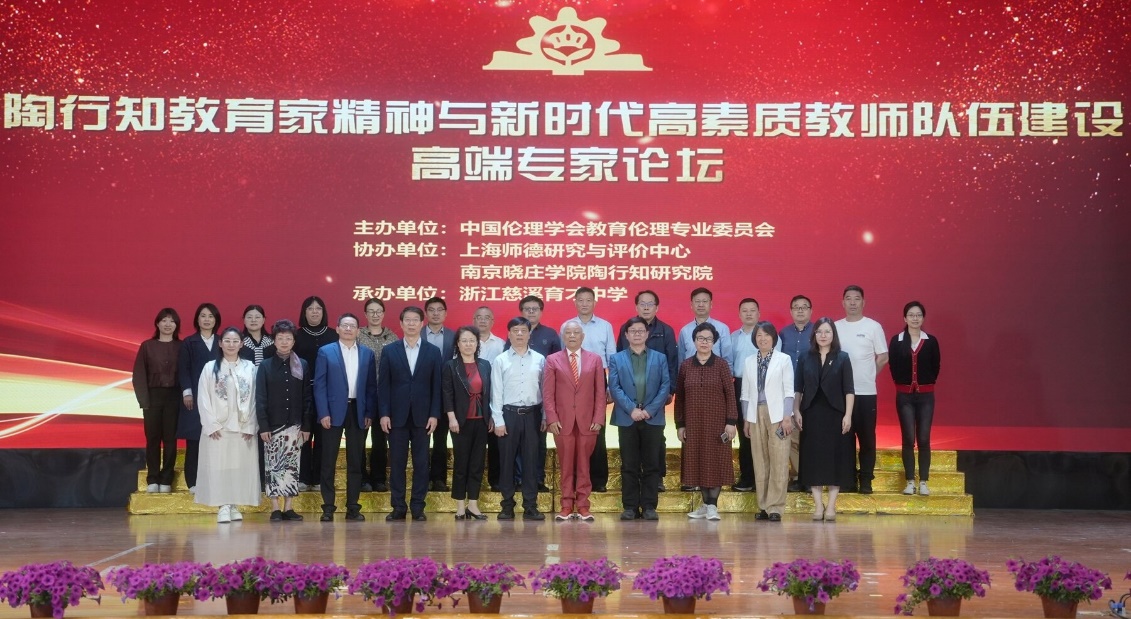 為貫徹落實習近平總書記和中央關于大力弘揚教育家精神、加強新時代高素質專業化教師隊伍建設重要指示精神,由中國倫理學會教育倫理專業委員會主辦,上海師德研究與評價中心、南京曉莊學院陶行知研究院協辦,浙江慈溪育才中學承辦的“陶行知精神、師德師風與新時代高素質教師隊伍建設”高端專家論壇,于4月18日至20日在浙江慈溪召開。來自首都師范大學、上海師范大學、南京師范大學、陜西師范大學、復旦大學、浙江師范大學、華東師范大學、南京曉莊學院、江蘇第二師范學院等高校的專家學者,以及來自全國的大中小學校長等教育工作管理者共40余人參加了會議,從理論與實踐相結合的角度共同探討如何在新時代大力弘揚陶行知的偉大精神,建設高素質專業化的教師隊伍。