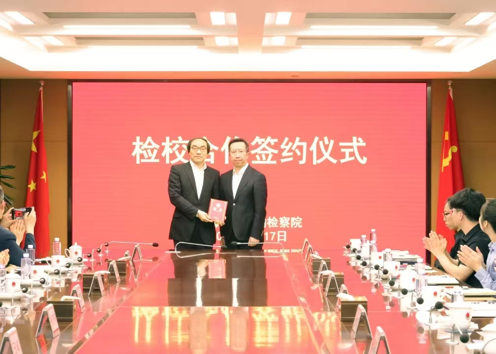 高亭代表學院,與上海鐵路運輸檢察院黨組書記、檢察長張煒,簽署“檢校合作”協(xié)議。