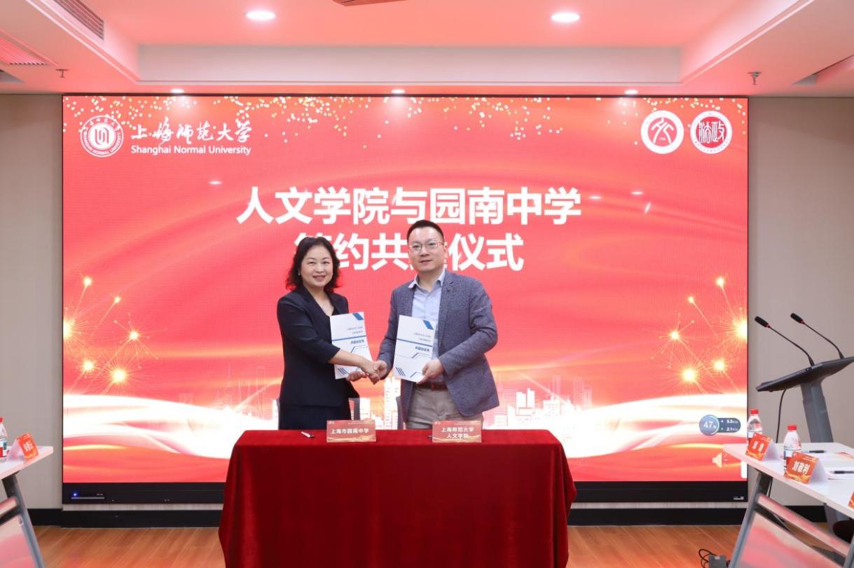 會上,上海師范大學人文學院與上海市園南中學簽署共建協議,正式開啟合作新篇章。雙方將在實習實訓、師資互訪、課程建設等方面開展務實合作,為提升人才培養質量與學生就業能力提供新平臺。
