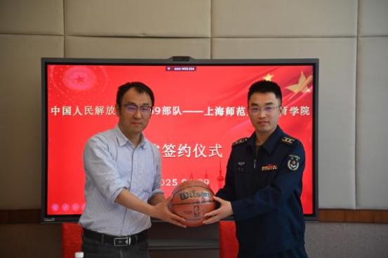 隨后,雙方代表簽署共建協議,胡斌代表學院向部隊贈送籃球,寓意“一球連軍民,共繪新‘籃’圖”。