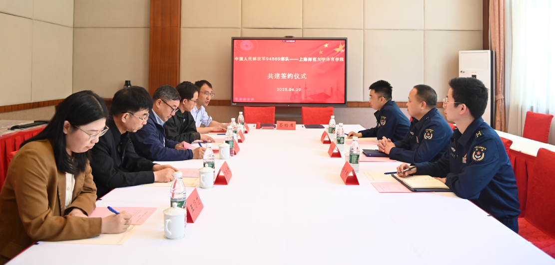 為深入貫徹落實黨的二十大、二十屆三中全會精神,貫徹落實習近平總書記關于新時代雙擁工作的重要指示,4月29日,上海師范大學體育學院與中國人民解放軍94869部隊舉行軍民共建簽約儀式并組織學生運動隊與來訪官兵開展首場籃球賽,開啟軍民合作新篇章。上海師范大學奉賢校區管委會副主任施家倉,體育學院班子成員、學生黨支部書記等出席簽約儀式。體育學院黨委副書記、副院長胡斌主持簽約儀式。