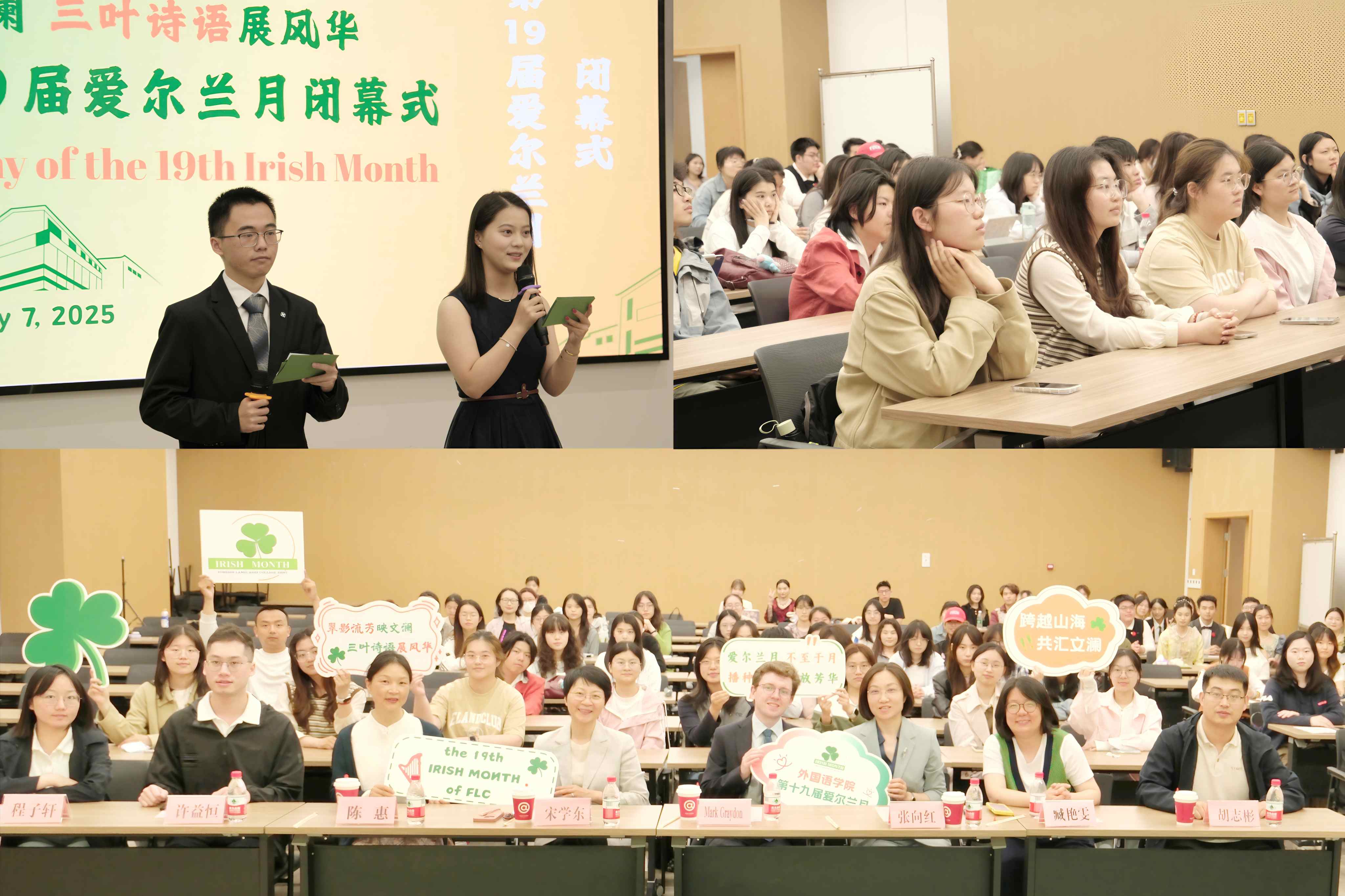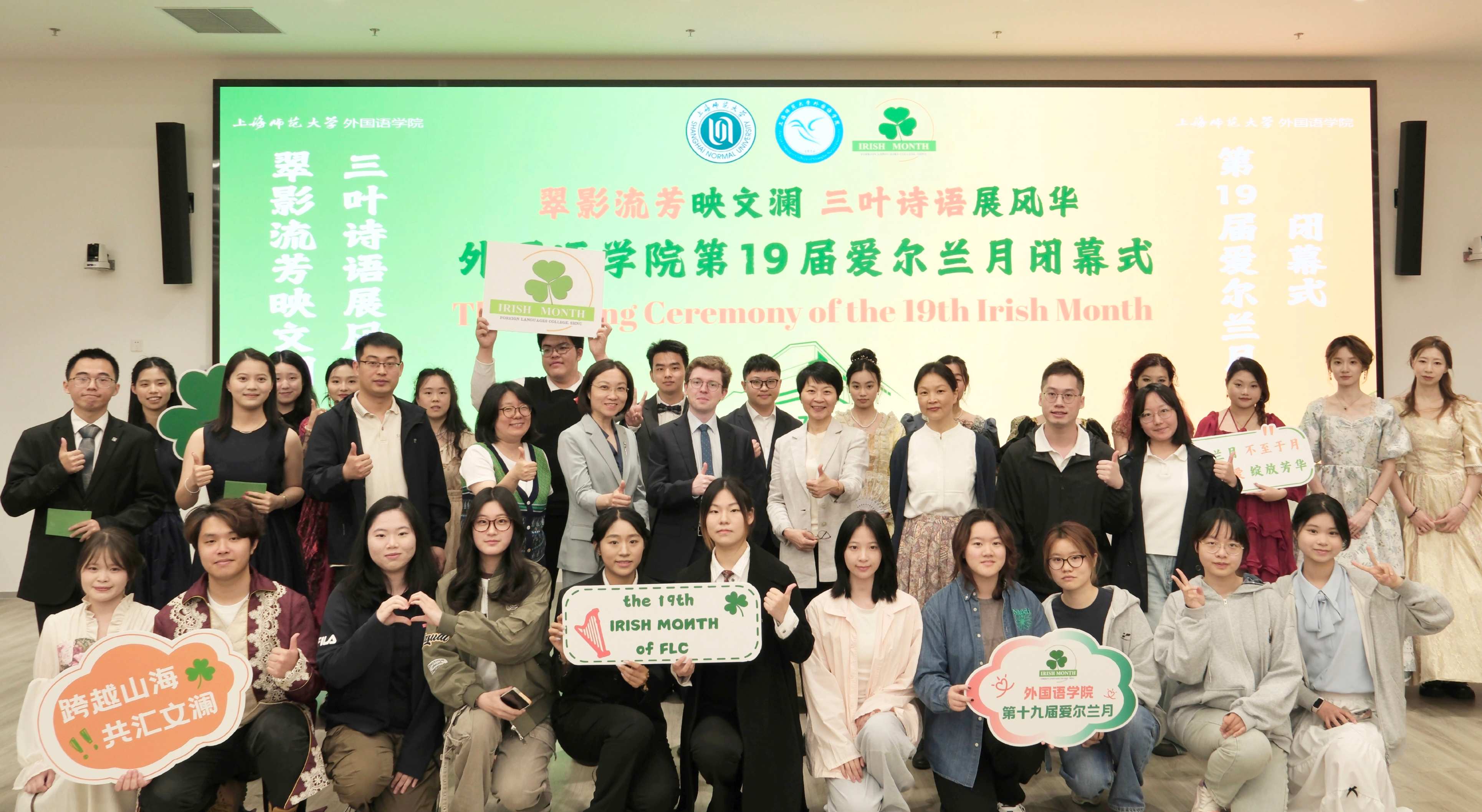 5月7日,以“翠影流芳映文瀾·三葉詩語展風華”為主題的外國語學院第十九屆愛爾蘭月在奉賢校區新大活B108圓滿收官。愛爾蘭駐滬副總領事Mark Graydon,校辦副主任張向紅,外國語學院黨委副書記、副院長臧艷雯,外國語學院副院長宋學東,愛爾蘭文學研究中心副教授陳惠,各年級輔導員以及學生代表出席活動。