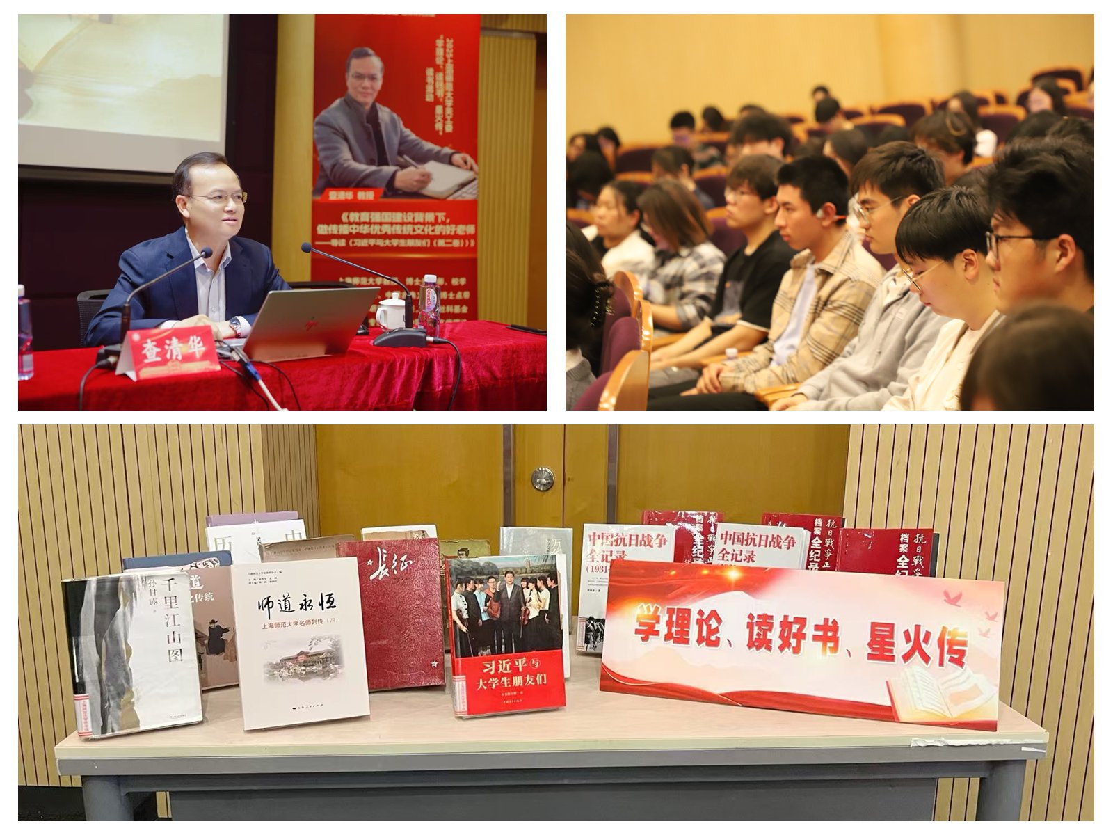 啟動儀式之后,查清華教授作《教育強國建設背景下,做傳播中華優秀傳統文化的好老師——導讀〈習近平與大學生朋友們〉(第二卷)》輔導講座。查清華教授闡釋了傳統文化的當代價值,從什么是經典以及如何讀經典出發,帶領全場師生原汁原味地感受了經典的魅力。他希望同學們能堅持歷史唯物主義的觀點,開展沉浸體驗式的閱讀,既能知行合一,又能注重文明互鑒,真正在讀好書中享受詩意的生活。