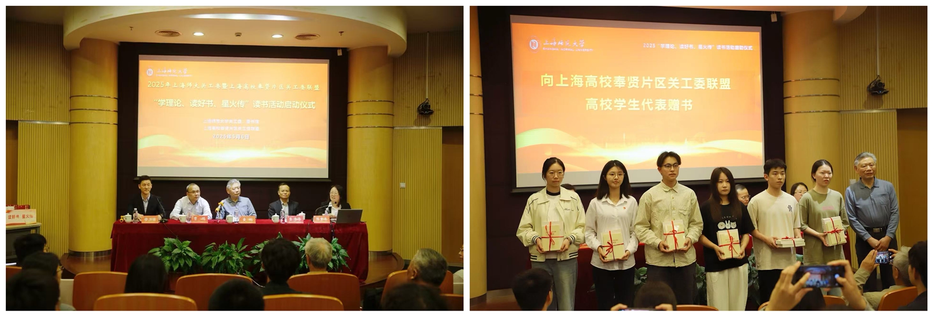 為深入學習宣傳貫徹黨的二十大和二十屆三中全會精神、全國教育大會精神、上海教育大會精神和學校第八次黨代會精神,進一步加強對青年學生理想信念教育、愛國主義教育和革命傳統教育,引領青年高舉中國特色社會主義偉大旗幟,肩負歷史使命,5月6日下午,2025年上海師大關工委暨上海高校奉賢片區關工委聯盟“學理論、讀好書、星火傳”讀書活動啟動儀式在我校奉賢校區圖文信息中心二樓報告廳舉行。華東理工大學、上海師范大學、上海應用技術大學、上海商學院、上海旅游高等專科學校、上海城建職業學院六所高校關工委聯盟單位150余名師生代表出席啟動儀式。市教育系統關工委副主任、上海高校奉賢片區關工委聯盟副理事長、校關工委常務副主任黃剛,上海師范大學圖書館黨委書記曹鵬,人文學院教授、博士生導師查清華,校特邀黨建組織員、學院關工分會副主任代表丁光勛、金輝和葉伯平,校離退休工作部(處)、學生工作部(處)、校團委以及圖書館代表出席。啟動儀式由上海高校奉賢片區關工委聯盟秘書長、上海師范大學關工委秘書長陳重來主持。