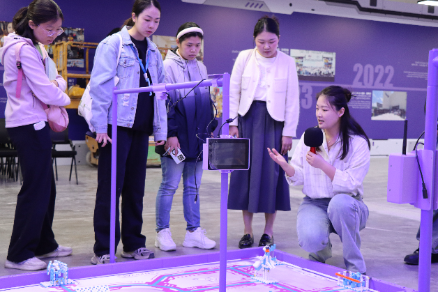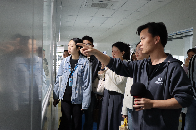 鯨魚機器人工作人員帶領來訪師生參觀鯨魚教育機器人產業基地,深度探訪機器人全流程智能制造產線,直觀感受從精密零部件加工到自動化組裝的工業美學。隨后,師生們移步機器人競賽場館,在沉浸式場景中了解賽事規則、設備調試及戰術布局要點,深入理解人工智能在教育場景中的創新應用。