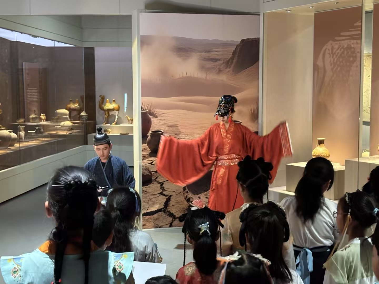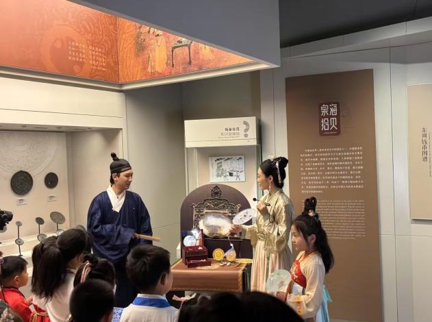 “沉浸參觀體驗活動”設計角色扮演、古風游戲等沉浸式環節,寓教于樂,以“大手牽小手”為理念,家長與孩子攜手穿行于仿古展陳間,在玻璃展柜前細品古籍善本,在互動問答中解鎖文物背后的故事。孩子通過沉浸式參與,不僅了解了文物故事,更對歷史產生了濃厚興趣。