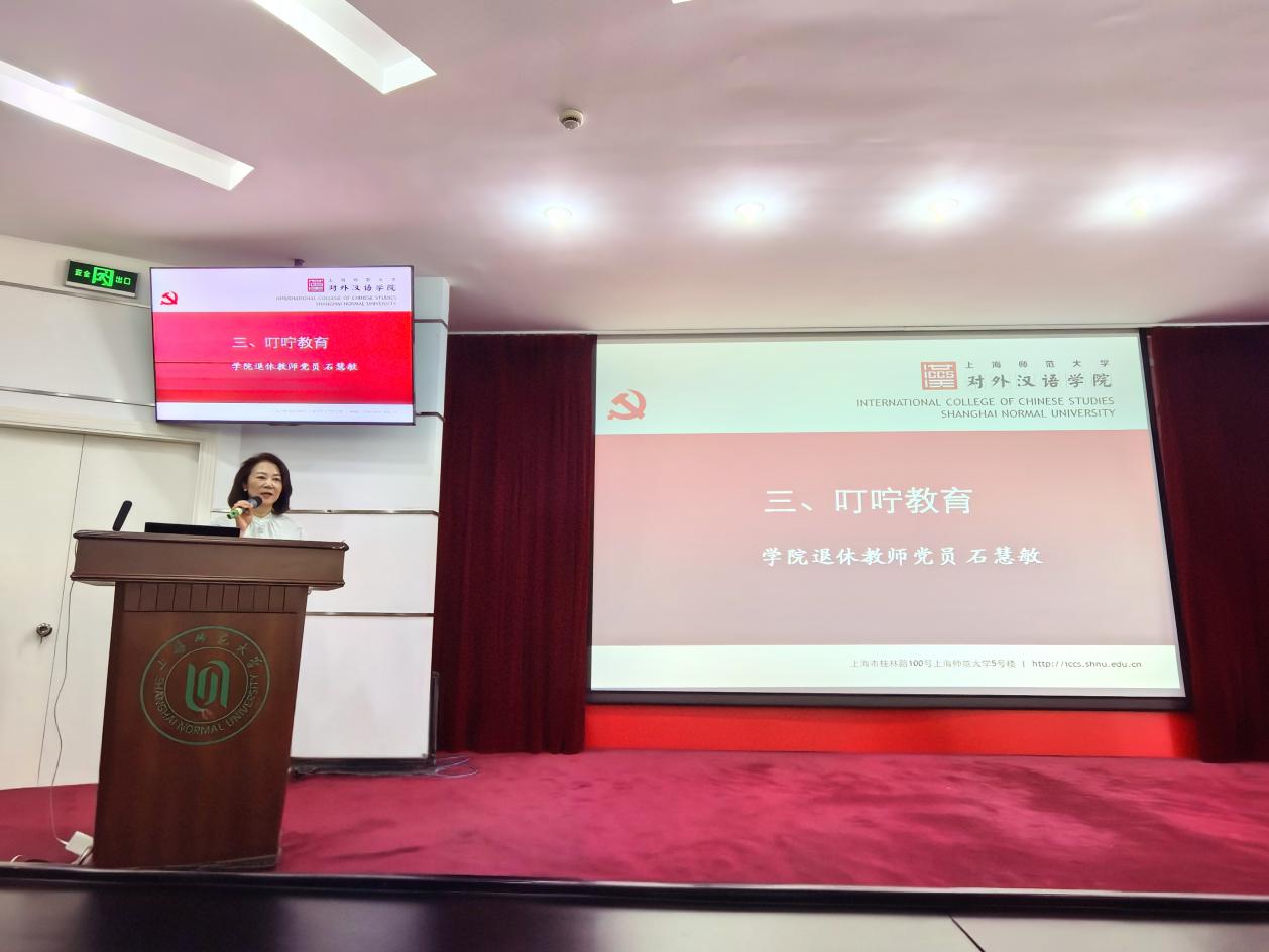 “從課堂到社會,變的是身份,不變的是共產黨人的精神追求。”學校老教授協會理事、人文和對外漢語分會副會長,學院退休教工黨支部的石慧敏老師結合40年國際中文教育經歷,為畢業生黨員作叮嚀教育:一是要堅定理想信念,永遠跟黨走,將個人理想融入黨和國家事業;二是要永葆奮斗精神,實干報國,用真才實學服務社會;三是要堅守人民立場,永做貼心人,多聽群眾呼聲,為群眾解難題;四是要保持黨員本色,嚴守紀律規矩,常懷敬畏之心,做清清白白的共產黨員。最后,她鼓勵學生們銘記入黨誓詞,帶著家國情懷和黨的囑托奔赴遠方,讓黨員徽章熠熠生輝。