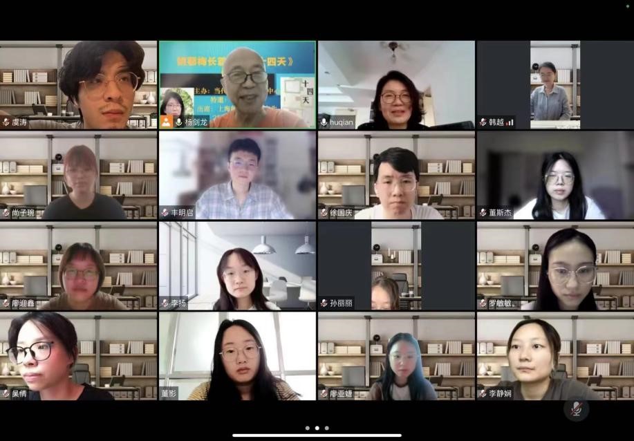 楊劍龍教授首先簡單介紹了姚鄂梅豐碩的創(chuàng)作成果及重要影響,介紹了長篇小說《十四天》的基本內(nèi)容。作家姚鄂梅介紹了《十四天》的創(chuàng)作過程與創(chuàng)作意圖,她說她第一次以其故鄉(xiāng)湖北宜都實(shí)名為背景創(chuàng)作小說,她回憶了武漢疫情期間其身在上海牽念宜都親人的個(gè)人體驗(yàn),回憶了她創(chuàng)作這部長篇小說的創(chuàng)作過程。研討中,楊劍龍教授對(duì)該長篇小說的倫理格局、人性袒露、逃離主題、苦難書寫和人物塑造等作了分析。博士生豐明啟、尚子婉、韓越、羅敏儀、徐國慶,博士黃明海、郝瑞娟,碩士生廖亞婕、虞濤等,結(jié)合疫情期間的親身經(jīng)歷,暢談了各自的閱讀感受。他們認(rèn)為長篇小說《十四天》是一部以武漢疫情為背景描寫宜都自我隔離十四天的故事,是一部描寫豐富復(fù)雜的人情與人性的佳作,作家以厚實(shí)的生活積累、頗具個(gè)性的人物塑造、疫情隔離期間的痛苦與掙扎呈現(xiàn),記錄和再現(xiàn)了2020年疫情期間社會(huì)現(xiàn)實(shí)與心理心態(tài),對(duì)于我們今天的防疫抗疫也具有重要的警示作用和啟迪意義。研討中,與會(huì)的研究生們提出了關(guān)于疫情與文學(xué)創(chuàng)作、愛情危機(jī)與人性剖析、性格邏輯與人物塑造等問題,作家姚鄂梅作了簡要的回答。最后,楊劍龍教授對(duì)會(huì)議進(jìn)行總結(jié),認(rèn)為姚鄂梅較早以長篇小說的方式反映武漢疫情爆發(fā)后的社會(huì)現(xiàn)狀,尤其生動(dòng)地寫出抗疫隔離期間人們的心理心態(tài)、矛盾沖突,再現(xiàn)了對(duì)中國傳統(tǒng)倫理社會(huì)差序結(jié)構(gòu)的沖擊,不僅具有社會(huì)學(xué)、歷史學(xué)意義,而且蘊(yùn)含著文化學(xué)、倫理學(xué)的價(jià)值。