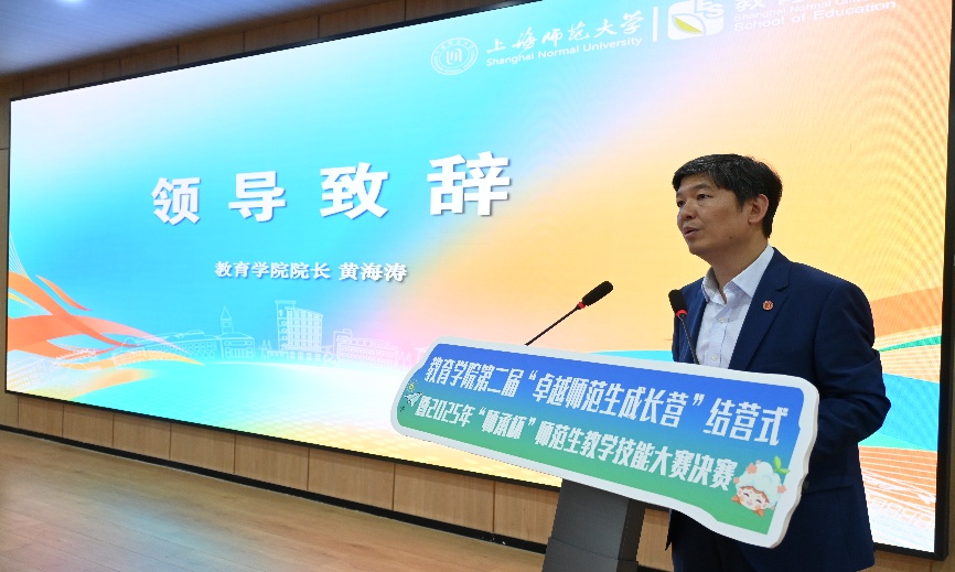 為深入貫徹新時代教育強國戰略,全面提升師范生的專業技能水平,5月14日下午,教育學院于徐匯校區教苑樓B107舉辦第二屆“卓越師范生成長營”結營式暨2025年“師承杯”師范生教學技能大賽決賽。活動邀請基礎教育領域杰出名師擔任評委,教育學院院長黃海濤、校教務處副處長楊帆、基礎教育處副處長李曉芳、教育學院領導班子成員及各系骨干教師代表出席本次活動。