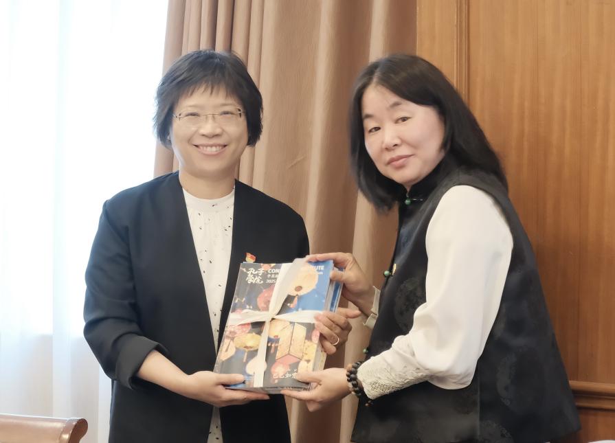 上海師范大學對外漢語學院黨委書記劉嵐接受上海外國語大學中文學院/國際文化交流學院贈書,表示上海師范大學對外漢語學院很高興參加“聯眾行遠”校際黨建聯建主題黨日活動,學院黨委大力支持,也歡迎各校國際中文教育專家到上海師范大學對外漢語學院傳經送寶。