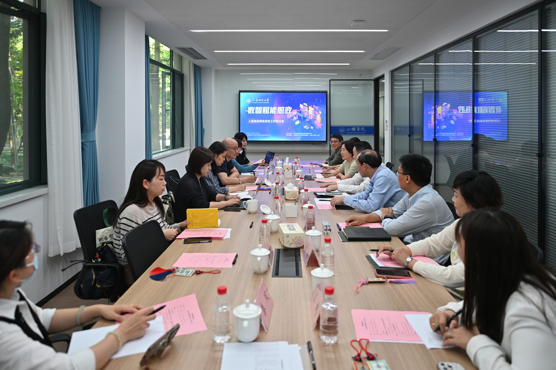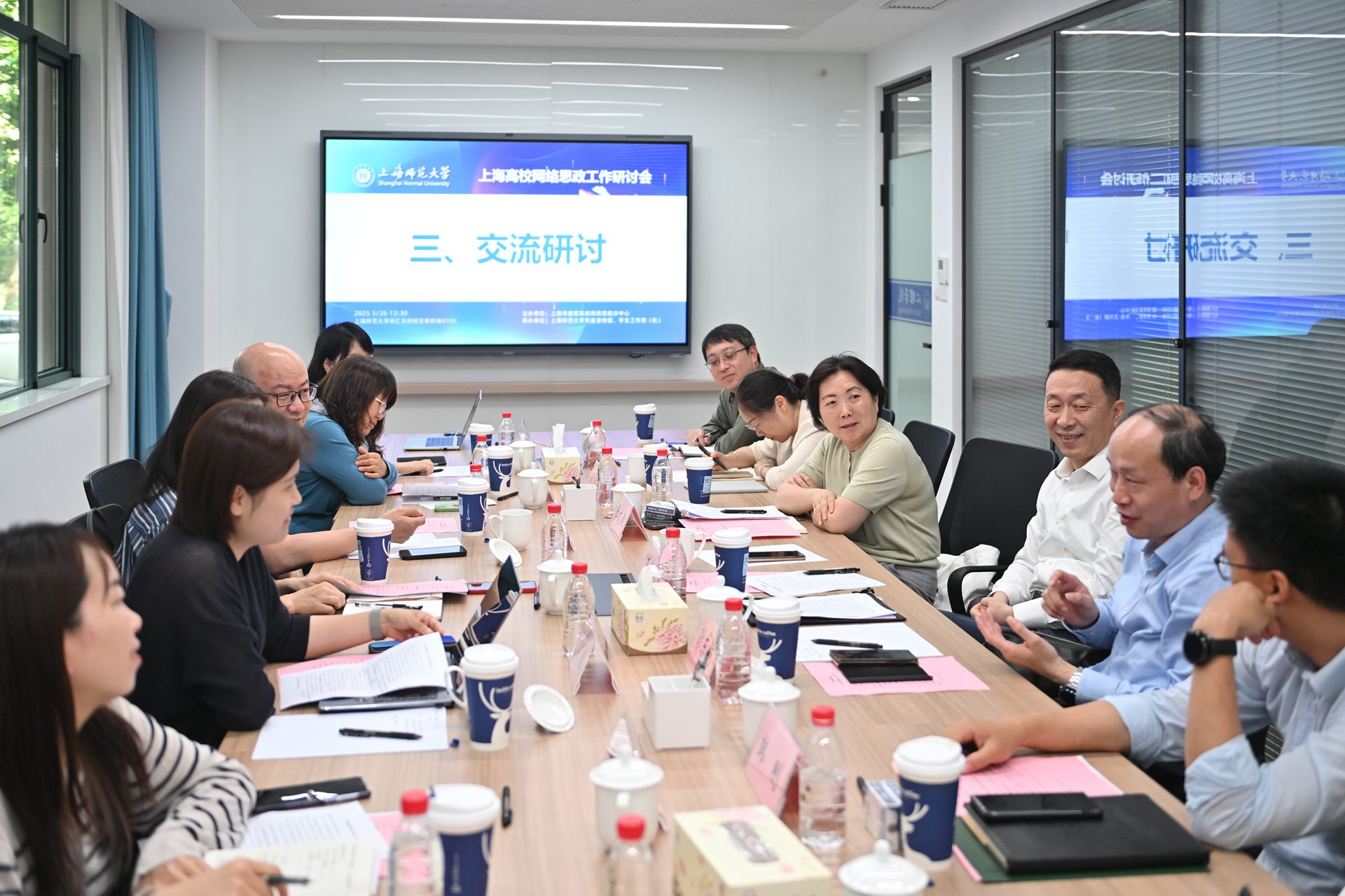 開幕式結束后,學校舉行了以“數智賦能思政,提升網絡思政工作有效性和實效性”為主題的上海高校網絡思政工作研討會。校黨委副書記、副校長朱惠軍,上海教育系統網絡文化發展研究中心主任彭東愷,以及來自上海交通大學、同濟大學、華東理工大學、東華大學、華東師范大學、上海應用技術大學、上海商學院等高校宣傳部門以及學工部負責人,我校宣傳部、研工部、學工部等相關負責人參加研討。研討會由校黨委常委、宣傳部部長張文潮主持。
