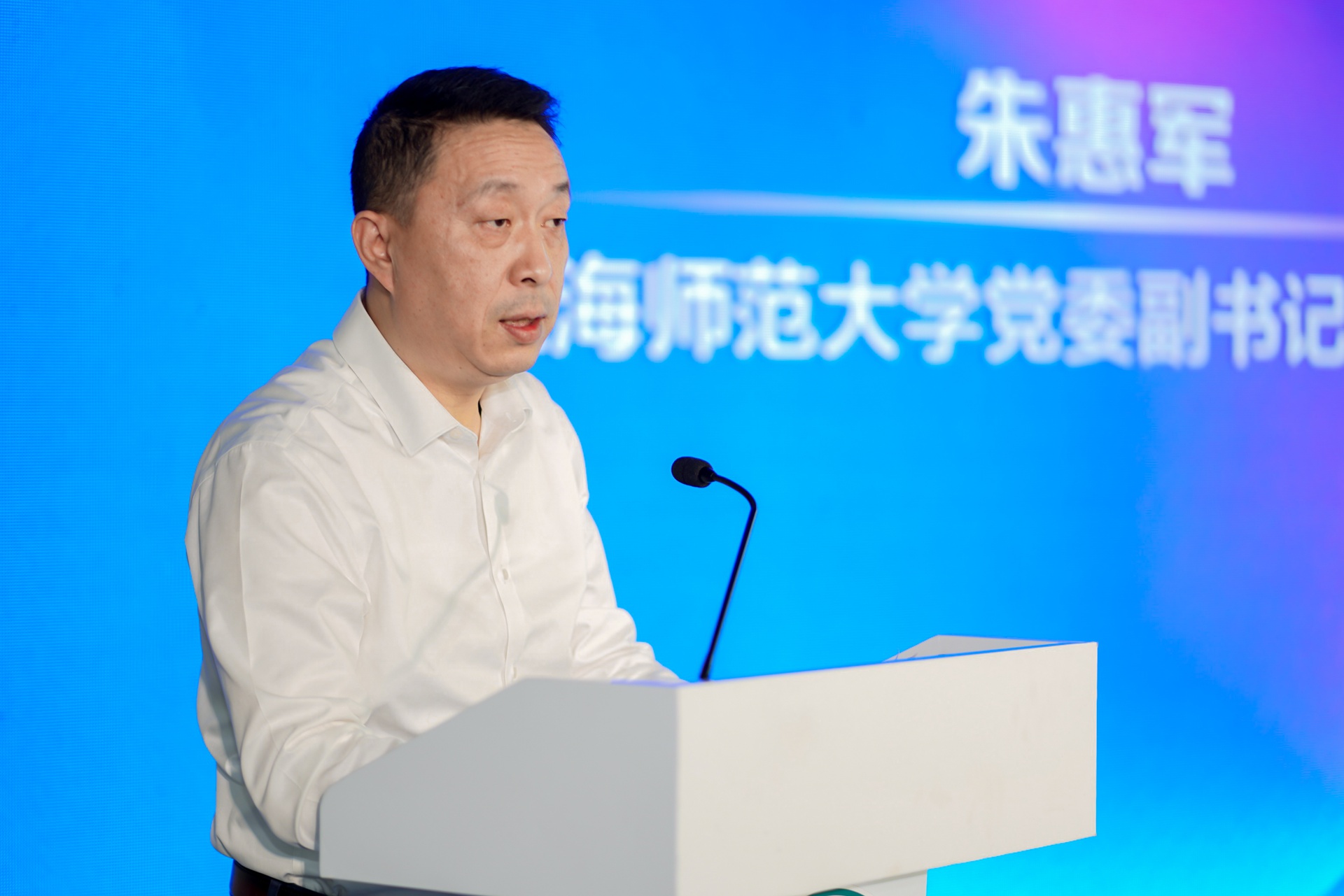 首先,校黨委副書記、副校長朱惠軍為開幕式致辭。他強調,青年學生在哪里,高校宣傳思想和網絡思政工作就要延伸到哪里,要通過“賽事宣傳-創作激活-矩陣傳播”的機制,構建起“師生共創、校院聯動”的數字內容生產新生態,形成具有師大特質的網絡思政工作品牌。