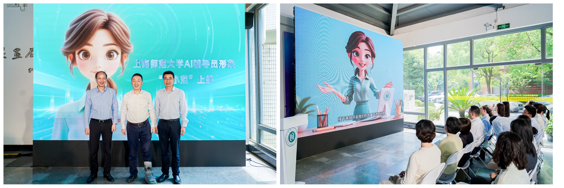 開幕式上,上海教育系統網絡文化發展研究中心主任彭東愷,校黨委副書記、副校長朱惠軍和校信息化辦公室主任顧益明共同揭曉了學校特殊的“新成員”——AI輔導員形象“師小范”。作為數智賦能思政教育的創新成果,“師小范”將化身24 小時在線伙伴,在未來陪伴師大學子成長成才,助力構建思政教育新格局。