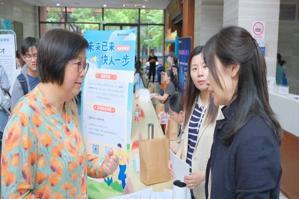 就業、實習招聘雙選會在徐匯校區博物館一樓拉開帷幕,本次雙選會匯聚了教育、科創、公共服務等領域的二十余家優質用人單位,提供了涵蓋教學、咨詢、管理、人工智能等多樣化實習崗位,旨在為學生搭建一個精準對接需求的就業平臺。校長袁雯來到現場與學生交流,教育學院院長黃海濤、心理學院院長蔡丹向用人單位介紹了兩學院學科建設和學生培養基本情況。