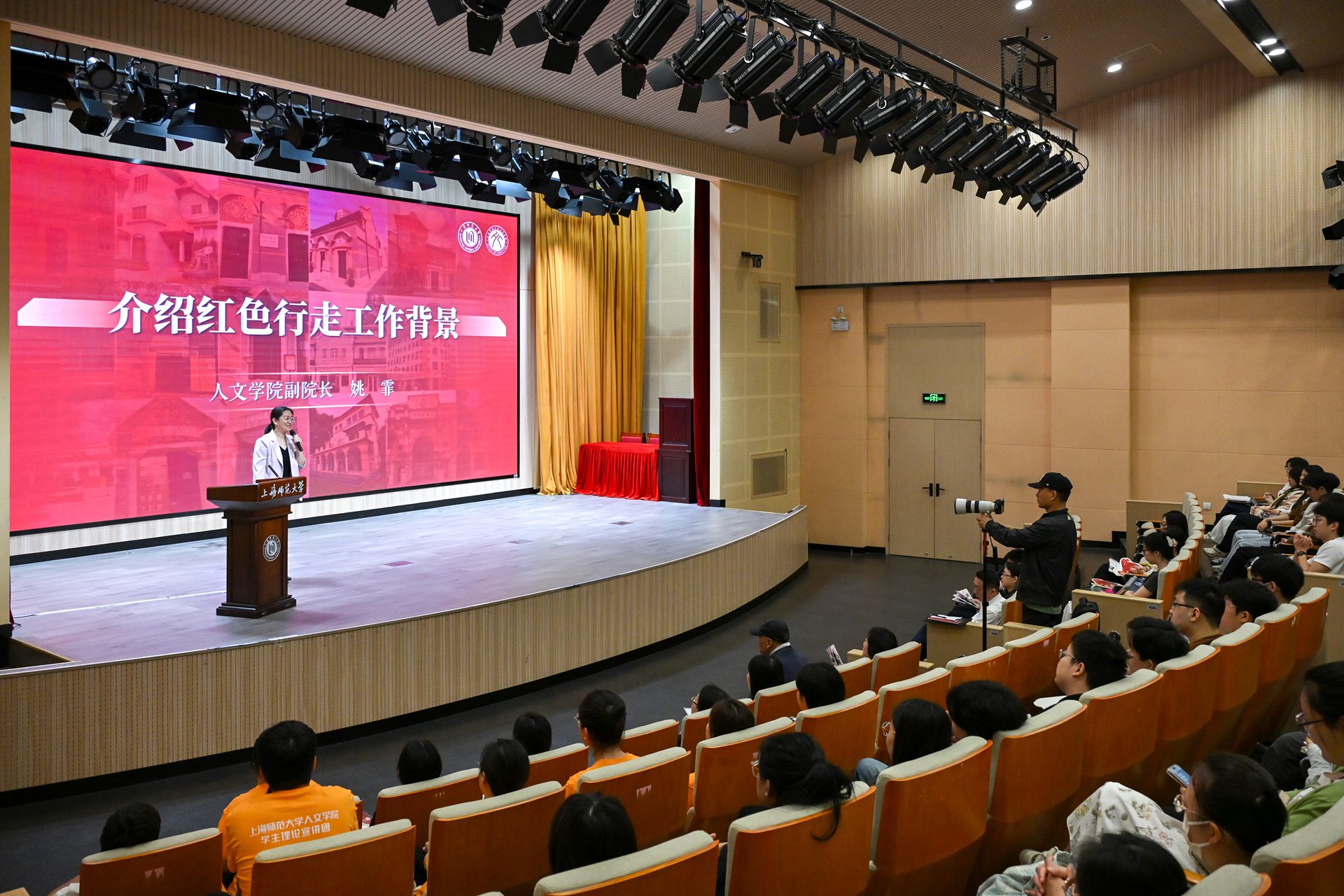 活動現場播放了人文學院此前開展的“早春里的紅色巡禮:南昌路CITY WALK”行走課堂的直播視頻回顧。人文學院副院長姚霏教授詳細介紹了紅色行走線路制作的工作背景。10條紅色經典線路匯編成冊、打磨成課不僅是對上海紅色歷史脈絡的梳理,讓歷史從檔案走向街巷,更是對新時代紅色文化傳播的積極探索,通過這樣“一步一景一課堂”的創新模式,讓紅色歷史可觸可感、直抵人心。