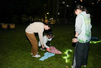 本次熒光夜跑活動精心設計,將體育與校園文化深度融合。沿途設置的趣味打卡項目更是別出心裁,趣味接力賽、蒙眼四人五足、飛盤挑戰賽、合作疊衣大挑戰、園區知識問答接龍、齊心協力拼一拼等項目,不僅考驗著同學們的身體素質和團隊協作能力,也讓大家在運動中享受快樂,充分展現了體育的魅力和趣味性。