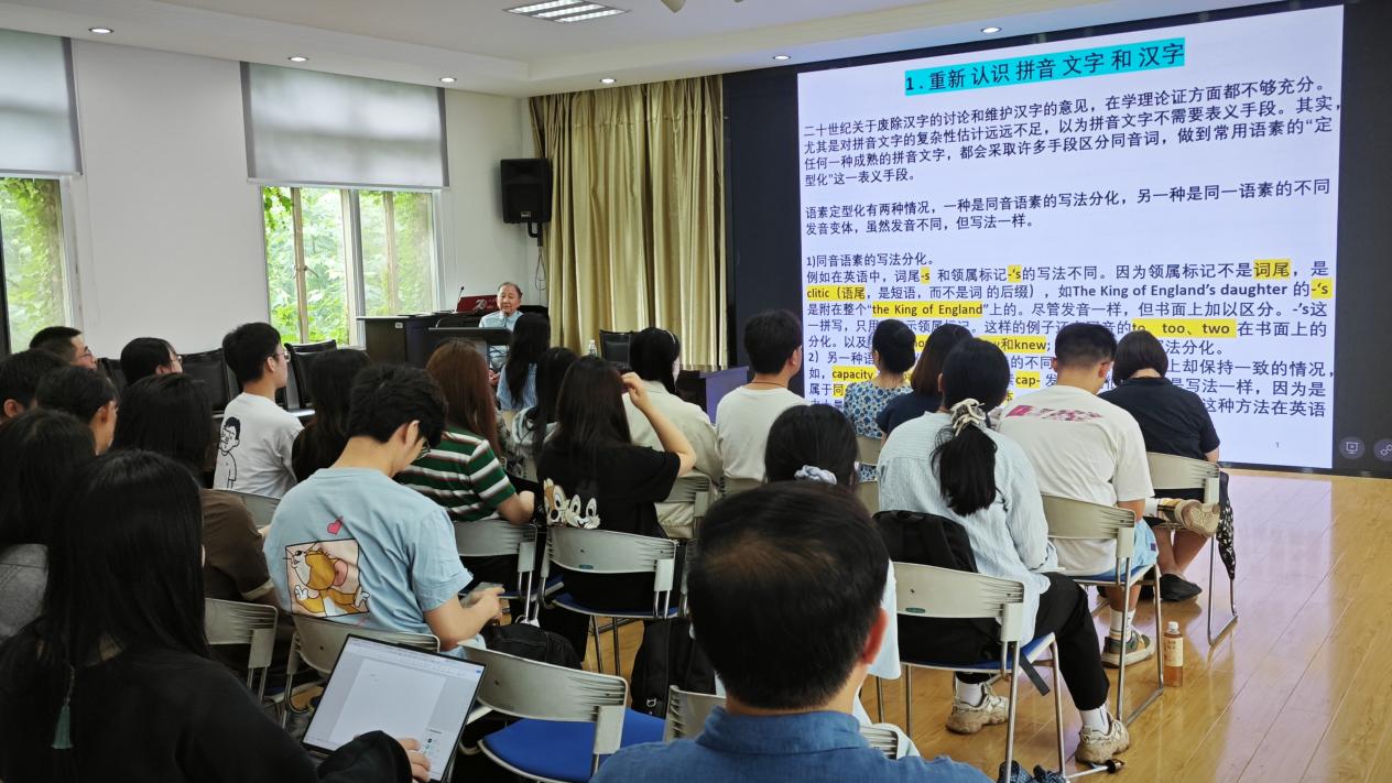 6月10日,著名語言學家陸丙甫教授應邀來校,為對外漢語學院師生帶來了一場題為“漢字拼音化的歷史脈絡與對外漢語教學實踐突破”的學術講座。本場講座由對外漢語學院副院長李文浩教授主持,國際中文教育碩士專業學位研究生和學院部分教師聆聽了講座。