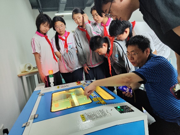 人工智能STEM前沿體驗(yàn)。在科技樓創(chuàng)新空間,學(xué)生們分組輪轉(zhuǎn),在智能語音實(shí)驗(yàn)室、創(chuàng)客空間、3D打印室、大疆實(shí)驗(yàn)室、人形機(jī)器人實(shí)驗(yàn)室、激光切割實(shí)驗(yàn)室、開源硬件實(shí)驗(yàn)室等場所深度參與各類科創(chuàng)活動,包括在大疆實(shí)驗(yàn)室體驗(yàn)機(jī)甲大師競賽并操控?zé)o人機(jī),在創(chuàng)客空間體驗(yàn)激光切割技術(shù)和3D打印技術(shù),在智能語音實(shí)驗(yàn)室與智能語音設(shè)備互動,直觀感受AI技術(shù)魅力。