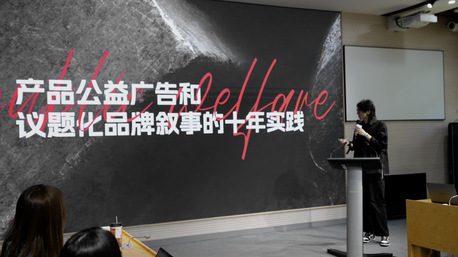 “公益廣告:相信廣而告之的力量。”來自勝加上海的創(chuàng)意總監(jiān)張詩佳在分享《產(chǎn)品公益廣告和議題化品牌敘事的十年實踐》的時候,通過回顧十年以來的相關(guān)實踐,為同學(xué)們提供如何以企業(yè)產(chǎn)品為物質(zhì)載體、將商業(yè)產(chǎn)品功能與社會公益理念緊密聯(lián)系在一起的思考路徑。依托產(chǎn)品使用場景完成公益理念的持續(xù)滲透、在與社會議題緊密相關(guān)的品牌敘事中實現(xiàn)認(rèn)同構(gòu)建,從而找到商業(yè)與公益結(jié)合的契機(jī),也讓公益?zhèn)鞑ジ唛L期生命力。