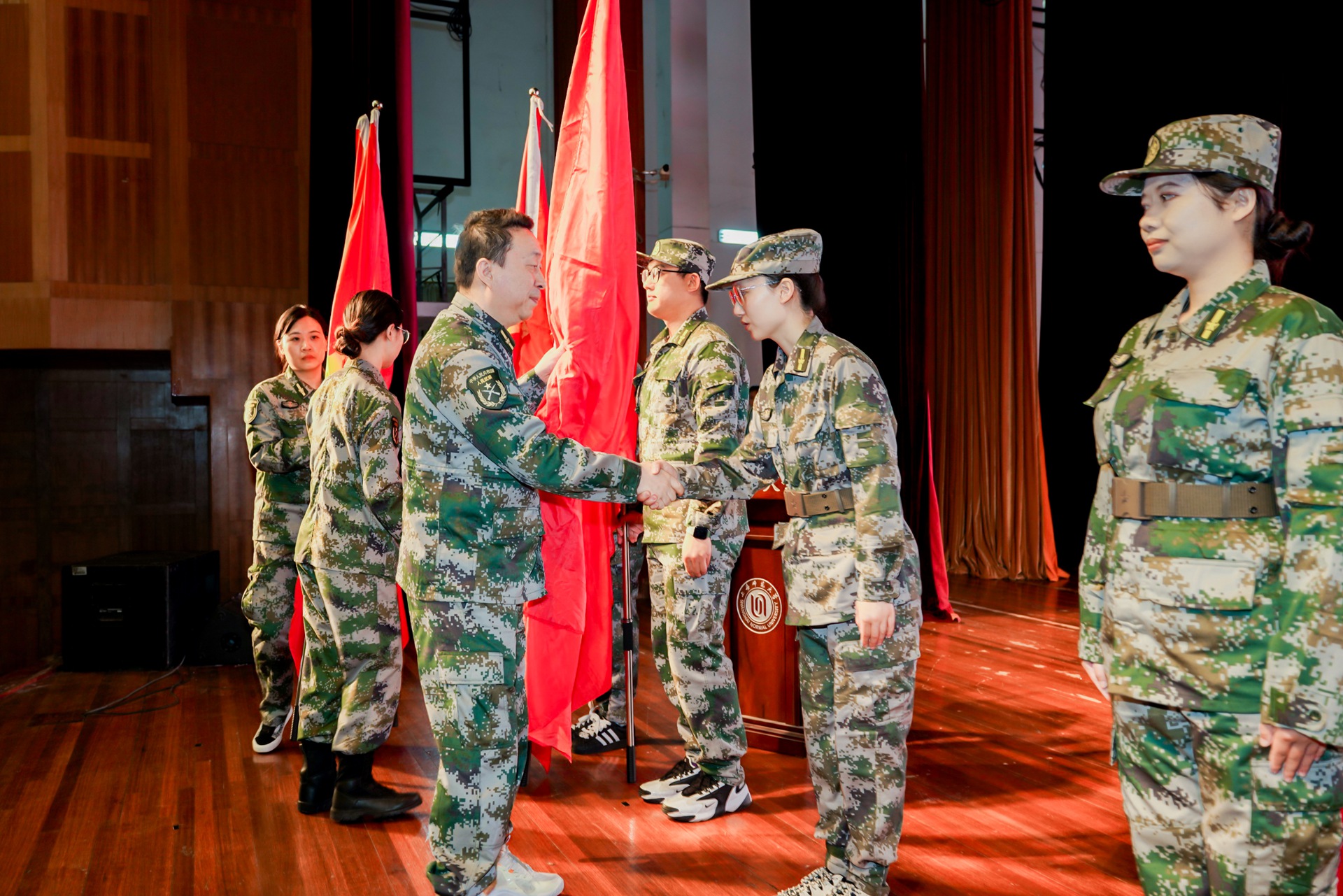 蔣明軍為退役大學生教官頒發聘書,一紙聘書承載著信任與責任,激勵教官們以專業素養和過硬作風成為指引同學們突破自我、蛻變成長的堅實力量。