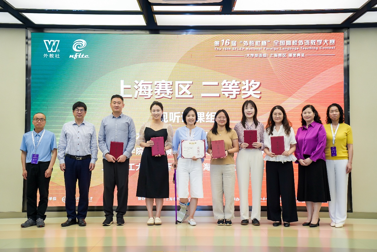 本屆大賽由上海外國語大學主辦、上海外語教育出版社承辦,以 “傳播中國,領航未來” 為主題,旨在推動新時代大學英語教學高質量發展。比賽分為“綜合課組”和“視聽說課組”,分設特等獎一名,一等獎三名和二等獎6名。來自本市多所高校的優秀選手匯聚比賽現場,經過激烈的角逐,我校外國語學院林辰老師憑借扎實的教學功底、創新的教學設計以及富有感染力的課堂呈現,巧妙地將思政元素融入綜合課教學,引導學生在語言學習中樹立正確的價值觀,展現了獨特的教學魅力,榮獲 “綜合課組” 一等獎;陳孚老師在 “視聽說課組” 比賽中,通過豐富的視聽資料和多樣化互動環節,激發學生的學習興趣,并且在各個環節中注重支架式教學,幫助學生建立敢于開口的自信,獲得評委們的一致認可,榮獲“視聽說組”二等獎。