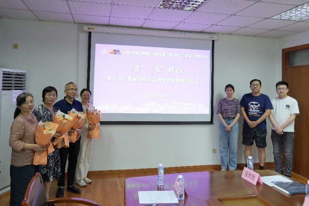 會(huì)上,黃新向帶教導(dǎo)師頒發(fā)聘書;新教師向帶教導(dǎo)師獻(xiàn)花。帶教導(dǎo)師代表林曉教授分享自身成長(zhǎng)經(jīng)驗(yàn),從教學(xué)、科研兩方面給出了寶貴意見(jiàn)。新聘帶教導(dǎo)師張相芬、陳志紅祝福青年教師繼續(xù)保持活力和干勁,取得好成果。新進(jìn)教師孫其芳老師、張恒勝表示,未來(lái)將深耕教學(xué)科研,傳承育人初心,爭(zhēng)取早日成為合格教師。