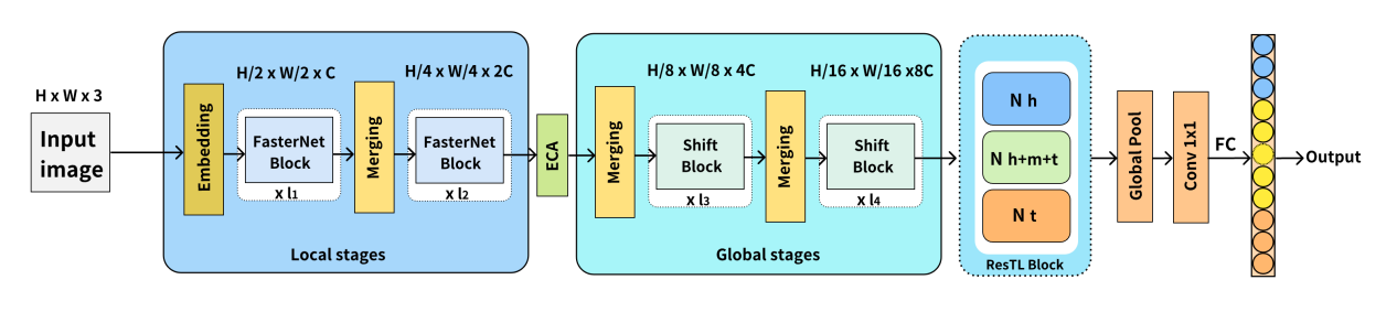 論文基于《通用規(guī)范漢字表》構(gòu)建了超900萬樣本量的Multi-Type Ancient Chinese Character Recognition(MTACCR)數(shù)據(jù)集。MTACCR數(shù)據(jù)集包含多種類型漢字圖像,包括原始掃描圖像和經(jīng)過預(yù)處理的二值化字形圖像。與現(xiàn)有相關(guān)數(shù)據(jù)集相比,MTACCR數(shù)據(jù)集在字符數(shù)量、古漢字類型、數(shù)據(jù)規(guī)模和圖像多樣性方面均實(shí)現(xiàn)了顯著擴(kuò)展和豐富。為了滿足不同應(yīng)用場景下古漢字的快速高效識別,論文進(jìn)一步提出Hierarchical Universal Network(HUNet)。HUNet采用層次化網(wǎng)絡(luò)架構(gòu),通過不同階段關(guān)注漢字的局部形狀和幾何特征、關(guān)鍵位置和筆畫關(guān)系、空間結(jié)構(gòu)關(guān)系,實(shí)現(xiàn)了模型參數(shù)利用效率的提升,使得模型網(wǎng)絡(luò)在保持低參數(shù)量和高吞吐量的同時實(shí)現(xiàn)了較高的識別性能。