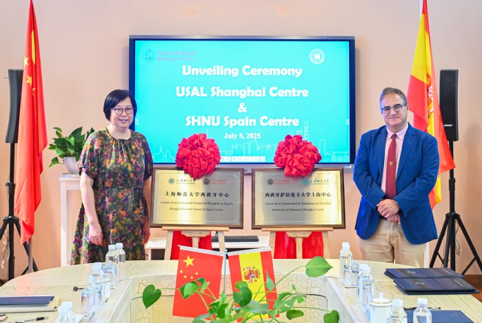 7月5日上午,校長袁雯和西班牙薩拉曼卡大學副校長勞爾·桑切斯·普列托(Raúl Sánchez Prieto)共同為“上海師范大學西班牙中心”揭牌,標志著學校第一個海外合作中心成立運行,雙方同期揭牌“西班牙薩拉曼卡大學上海中心”。副校長蔣明軍出席揭牌儀式,國際交流處處長肖勝雄主持儀式。學校辦公室、人事處、對外漢語學院和信息與機電工程學院相關負責人出席活動。