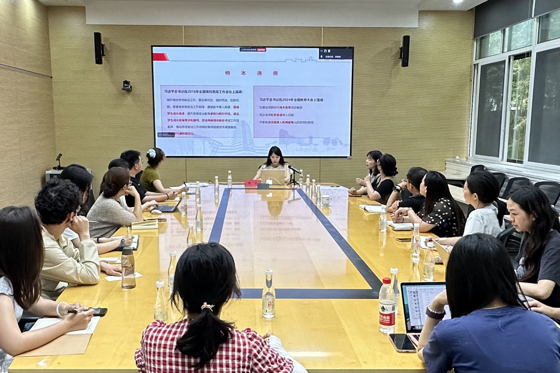 本次推進會邀請教育部名師工作室(魏冰網(wǎng)絡(luò)文化工作室)主持人、全國最美高校輔導(dǎo)員、全國高校輔導(dǎo)員年度人物、東華大學副教授魏冰作專項培訓(xùn)。魏冰以“從出圈到留存:網(wǎng)絡(luò)思政的跨屏共振與價值”為主題,圍繞行走課堂打造青年敘事新載體、網(wǎng)絡(luò)賦能構(gòu)建思政傳播新生態(tài)及價值引領(lǐng)凝聚青年使命新共識三方面展開分享,并與到場師生就行走路線進行交流討論。