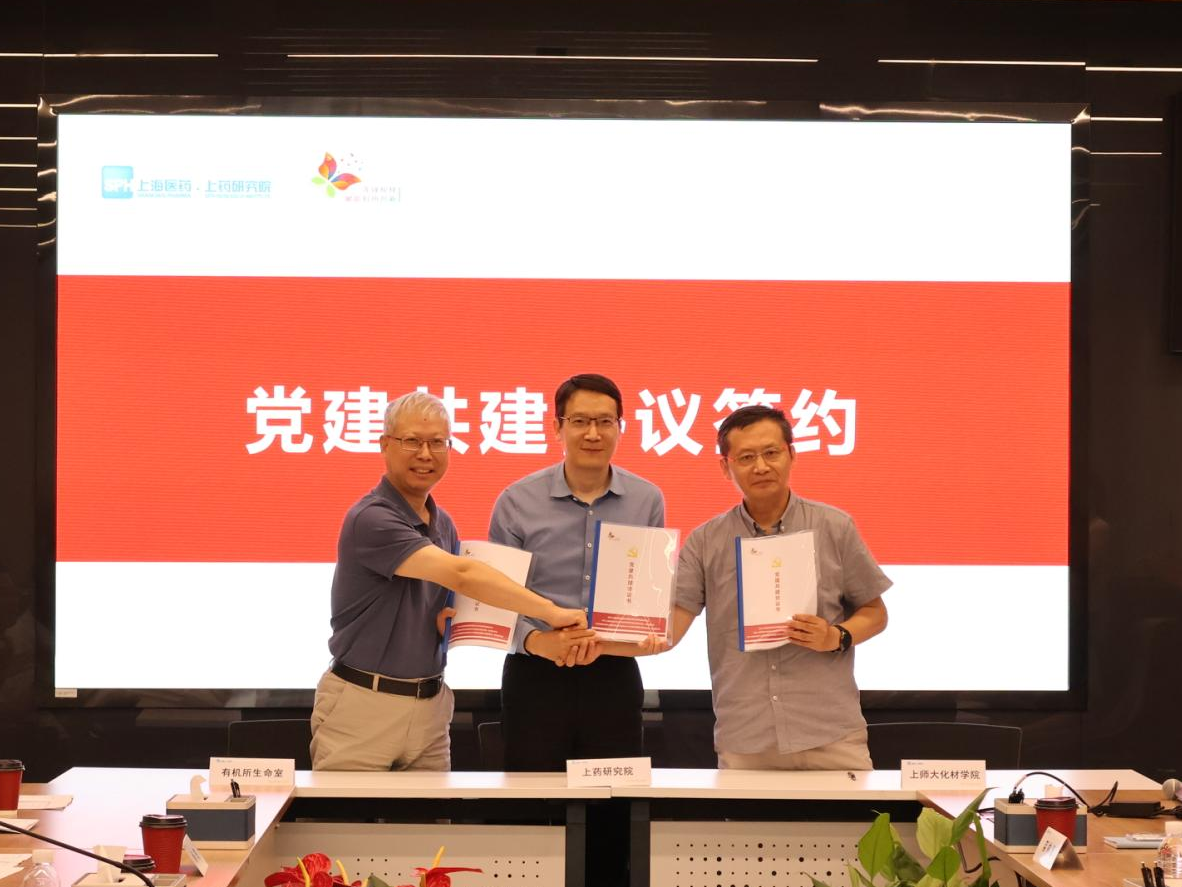 在黨建工作交流環節,化材學院化教第一黨支部書記賈能勤同志介紹了通過教育部全國黨建工作樣板支部的成功創建,支部在立德樹人、科研創新以及服務國家需求中所取得的積極成果。上海有機所生命過程小分子調控全國重點實驗室第一黨支部副書記黃維雪介紹了支部以“小分子調控”國家戰略需求為導向,打造了“黨建—科研”雙融雙促的標桿案例。上藥研究院黨委籌備組組長、副院長、工會主席陸偉介紹了上藥研究院以“紅色引擎”助推科研創新,黨員先鋒隊在藥物研發攻關中的核心引領實踐。隨后,上師大化材學院化教第一黨支部與上海有機所生命過程小分子調控全國重點實驗室第一黨支部、上藥研究院黨委簽署了三方黨組織聯建共建協議書,明確未來將在主題黨日活動、科研項目研發、人才隊伍培養等方面深化交流合作。