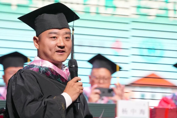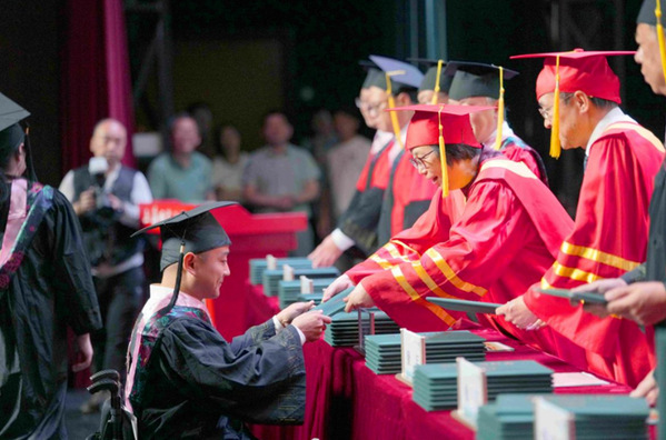 他從校長袁雯手上接過畢業(yè)證書