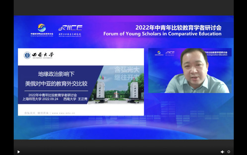 王正青教授作《地緣政治影響下美俄對中亞的教育外交比較》主旨發言,從地緣政治學的新研究視角下對中亞教育外交政策展開了多維度比較分析,包括高等學校合作辦學、留學政策、教育資源利用以及教師培訓等。這一命題的提出,也對中國提出了挑戰,我們還是要堅持“走出去”的發展戰略,利用“一帶一路”和上海合作組織等平臺,做好對中亞各國的教育外交工作,特別是比較教育的中青年學者要有“走出去”的魄力和勇氣,去應對地緣政治對地區教育發展所帶來的挑戰。