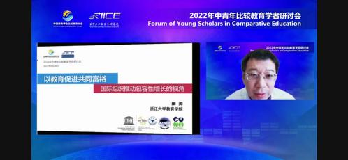 闞閱教授作《以教育促進共同富裕:國際組織推動包容性增長的視角》主旨發言,他從教育角度分析了共同富裕問題,從國際組織有關包容性增長的理論和政策視角,對共同富裕問題進行了深入的分析,闡述了共同富裕理論與政策對教育的影響,如增加受教育者的年限,消除收入不平等狀況等,并對包容性增長的評價指標體系及政策支持進行了論述。