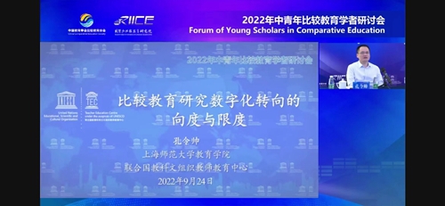 孔令帥教授作《比較教育研究數字化轉向的向度與限度》主旨報告,從動因、向度、限度三方面對比較教育研究中的數字化轉型進行了深入分析,中國作為教育數據生產使用大國,需要從數字化轉向中挖掘有價值教育“金子”以應對比較教育學科的新挑戰。