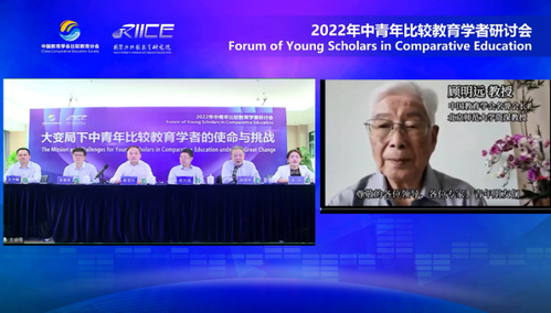顧明遠教授通過視頻致辭,他表示青年是我們的未來,青年學者是我們學科的未來。他回顧了比較教育的發展進程,指出比較教育當今進入了一個新時代,最根本的任務是要為我們國家的教育發展服務。教育工作者任重道遠一方面我們要吸收國外優秀經驗,另一方面要講好中國教育故事,讓世界了解我們國家的教育創新,這也是比較教育學者應當擔當的使命與責任。最后,顧教授祝我們的大會取得圓滿成功。