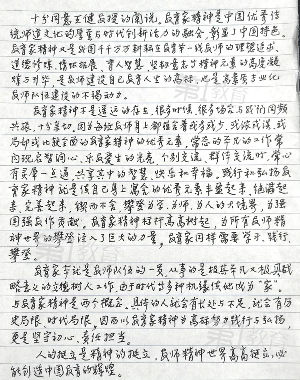 “教育家精神”是否離廣大普通教師太遙遠?我們當如何理解“崇高”?卓越,是否必然意味著與平凡的決裂?教師節當晚,在讀過上述推文后,于漪老師親筆寫下了她的所思所感——