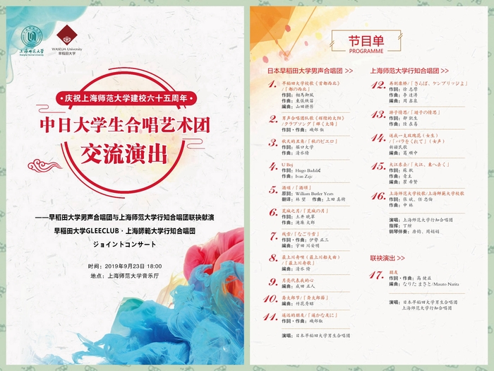 演出單位:上海師范大學行知合唱團 早稻田大學男聲合唱團