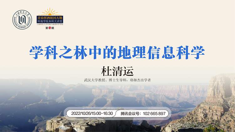 10月26日下午3時,環境與地理科學學院第19期本科大講堂以騰訊會議方式如期舉行。此次本科大講堂邀請到武漢大學資源與環境科學學院教授、博士生導師、珞珈杰出學者杜清運教授,作題為“學科之林中的地理信息科學”的講座。講座由副院長陳浮主持,院長高峻、院黨委副書記張紅、部分教師代表、全體輔導員老師及學院本科一至三年級近300名學生參加了本次講座。