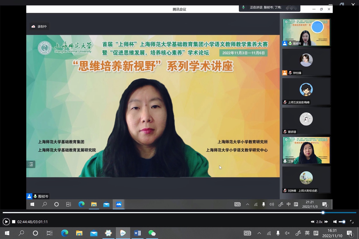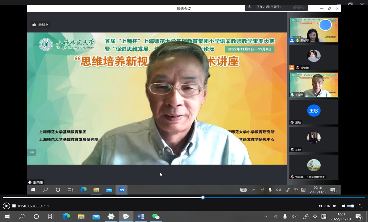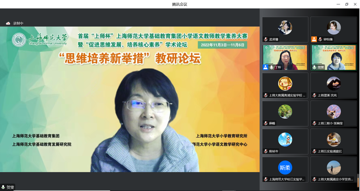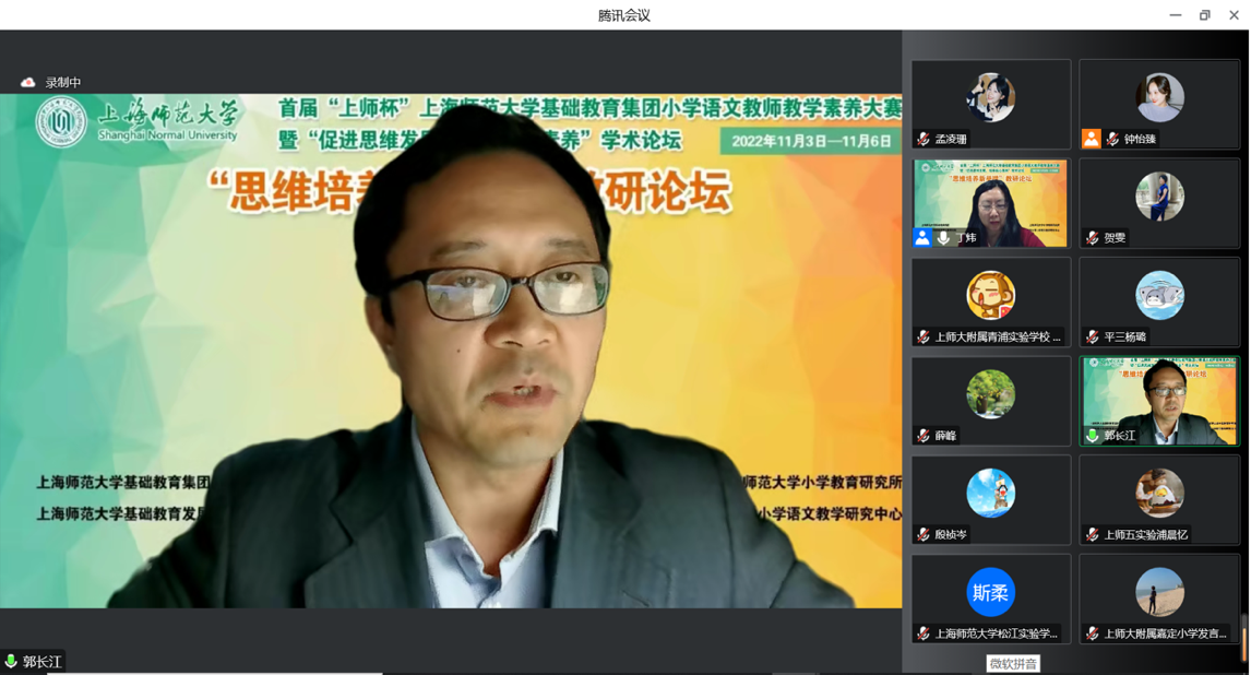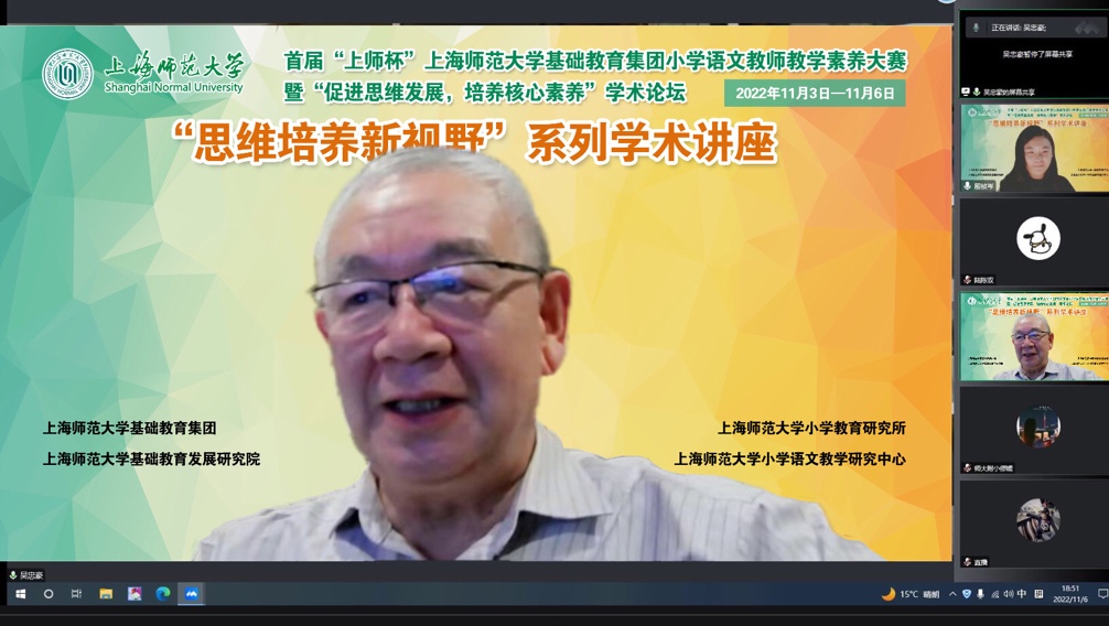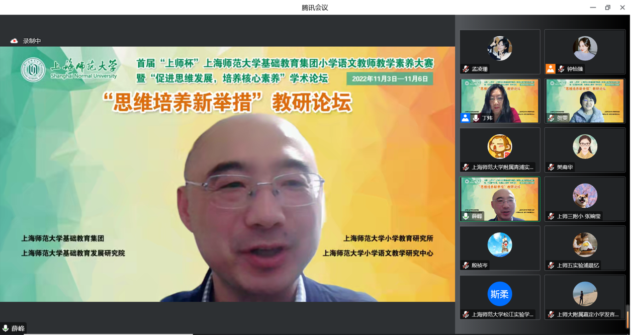 11月3日至6日,上海師范大學基礎教育集團、上海師范大學基礎教育發展研究院、上海師范大學小學教育研究所、上海師范大學小學語文教學研究中心聯合舉辦了首屆“上師杯”上海師范大學基礎教育集團小學語文教師教學素養大賽暨“促進思維發展,培養核心素養”學術論壇活動。除了首屆“上師杯”小學語文教師教學素養大賽決賽外,活動還包括“思維培養新視野”系列學術講座與“思維培養新舉措”附屬學校教研論壇。專家的前沿視野與創新觀點、學校的扎實行動與特色舉措,吸引了近6000名來自上海師范大學基教集團附屬學校的語文教師、上海師范大學小學教育專業的本科生、碩士研究生,以及來自全國各地的語文教育工作者、研究者。