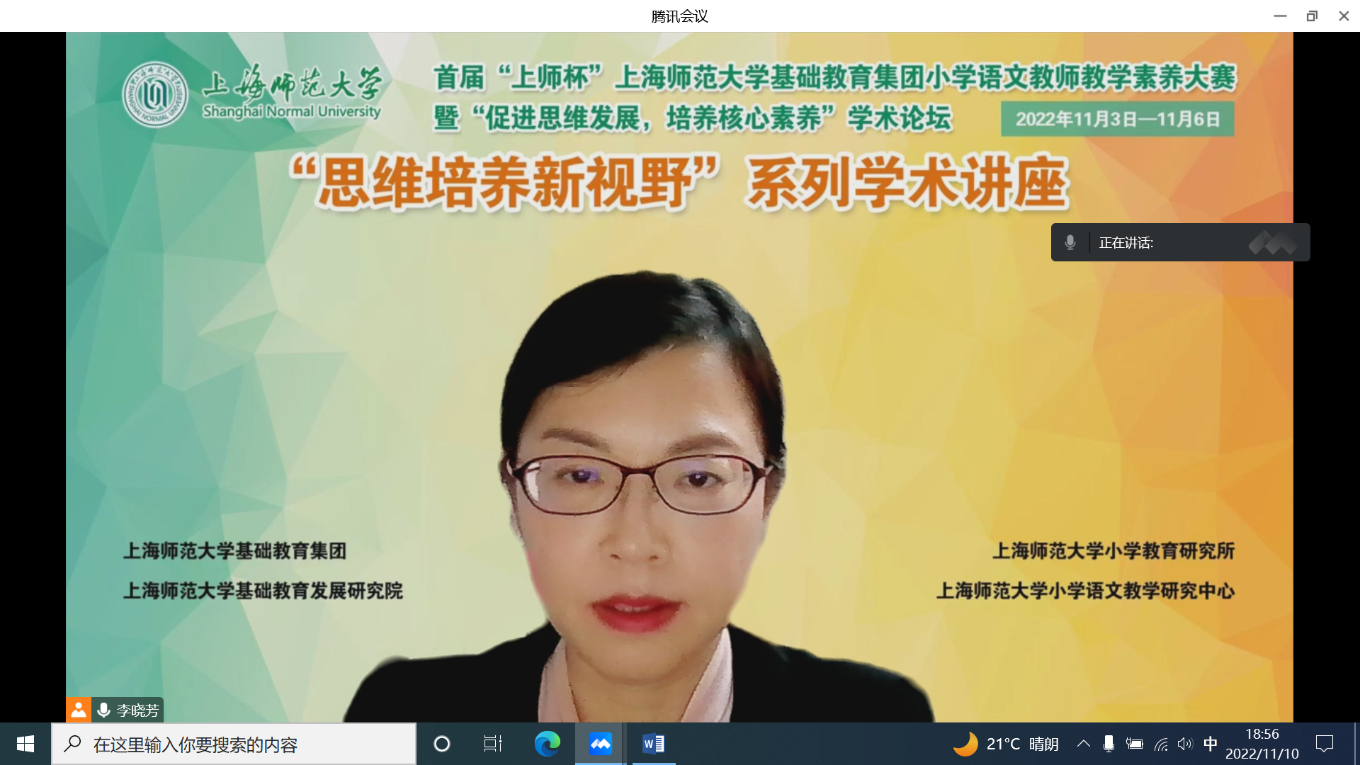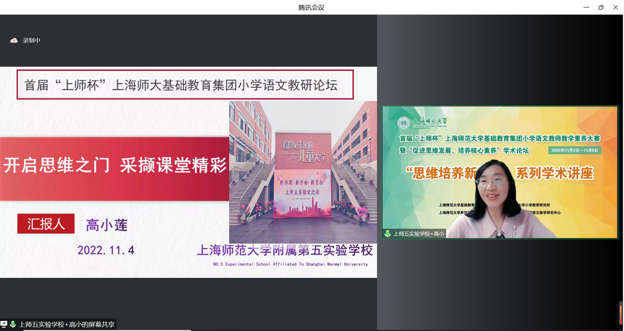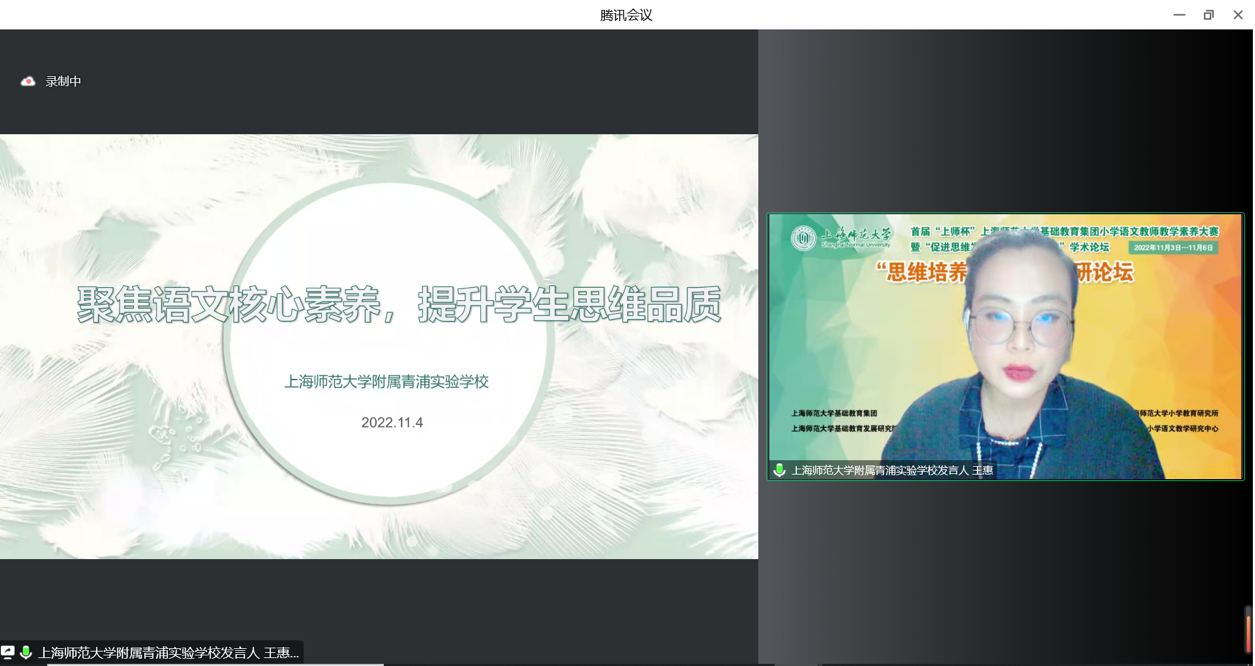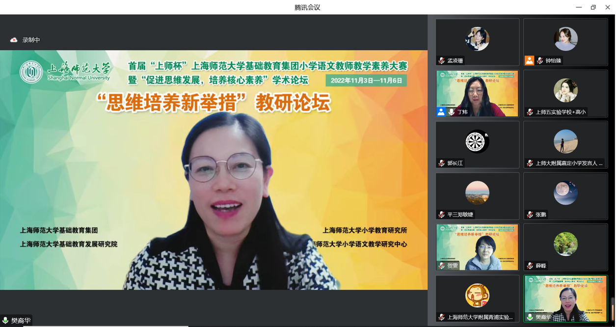 上海師范大學附屬嘉定小學語文教研中心副主任張文潔老師匯報了小學語文學習任務群框架下學生思維培養的新舉措。