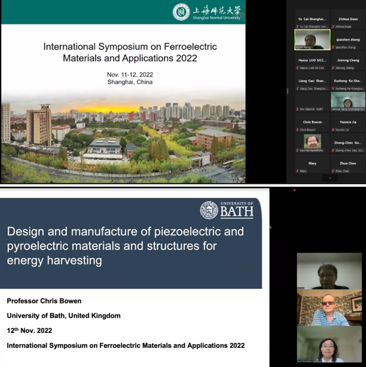 11月11日至12日,我校數理學院物理系舉辦2022年度國際鐵電材料及應用研討會。會議采用線上方式進行,來自澳大利亞悉尼大學、英國巴斯大學、日本千葉大學、香港理工大學、中國科學院上海硅酸鹽研究所、清華大學、復旦大學、南京大學、上海交通大學、四川大學、哈爾濱工業大學、北京師范大學等國內外院校50余名專家、學者參加會議;由數理學院教授王飛飛主持,多名研究生參會。