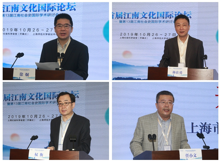 中共上海市委宣傳部副部長徐炯在論壇開幕式上講話,上海師范大學黨委書記林在勇、上海市社聯黨組書記、專職副主席權衡分別代表會議主辦方致辭,開幕式由上海市社聯專職副主席任小文主持。