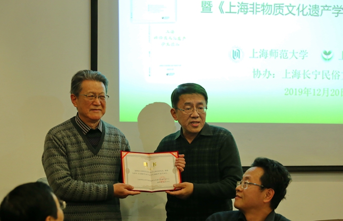 在此次會(huì)議上,上海師范大學(xué)中國(guó)非物質(zhì)文化遺產(chǎn)傳承研究中心還為2020年度五位特約研究員頒發(fā)了聘書(shū)。