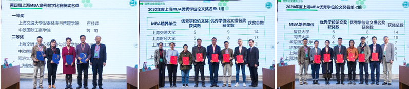 上海MBA教指委秘書長許鑫主持了隨后的年度優秀表彰與交流環節。上海MBA教指委主任委員邵志清宣讀了第四屆上海MBA案例教學大賽和2020年度上海MBA優秀學位論文的獲獎名單,束金龍、殷志文、陳世敏、侯麗敏、魏航等依次為獲獎代表頒發榮譽證書。