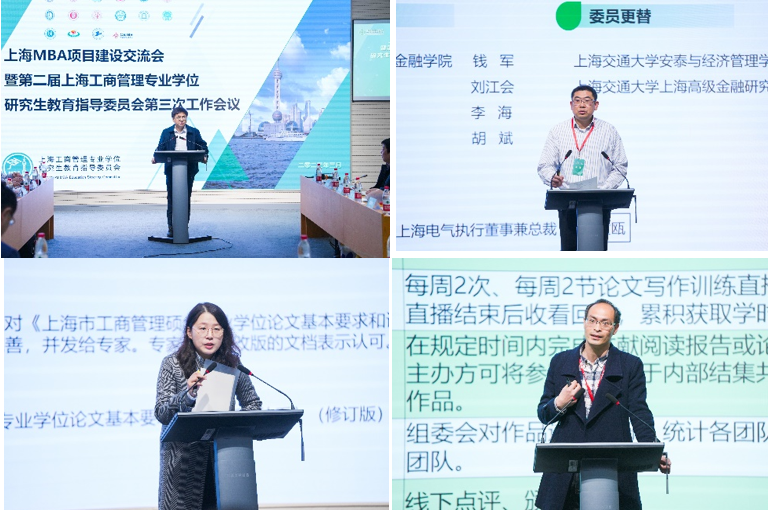 我校商學院院長、上海MBA教指委委員劉江會主持了上海MBA項目交流環節。上海MBA教指委秘書處的許鑫秘書長,以及張昫頻和姚占雷兩位秘書處成員分別通報了新增MBA培養單位和委員變更情況、上海市MBA學位論文抽檢評價指標體系修訂工作、上海MBA研學平臺建設及MBA學生論文寫作賽事的策劃方案。
