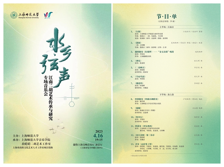 本場音樂會由上海市教委高校文化藝術(shù)人才工作室項目資助,項目團隊以“江南二胡藝術(shù)傳承與研究”為中心議題,深入、系統(tǒng)地研究、傳承和詮釋江南二胡藝術(shù),以推進師范高校藝術(shù)學(xué)科建設(shè)與人才培養(yǎng),服務(wù)于上海教育文化發(fā)展。