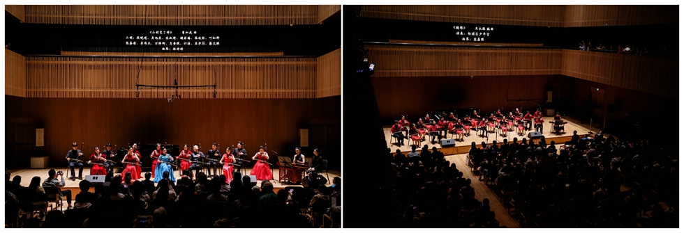 在傳承文脈的同時,新一代音樂家也希望對典雅、雋永的江南二胡藝術(shù)賦予鮮明的時代價值。融入蘇州評彈音樂元素的新作《桃花塢》采用傳統(tǒng)的五聲調(diào)式,勾勒作者生活在蘇州桃花塢大街的童年記憶;《評東彈西》則將中國評彈與西方爵士樂風(fēng)恰當?shù)佤酆嫌谝惑w,抒情優(yōu)美與活潑跳動的對比性主題相映成趣;由楊浦區(qū)少年宮民樂團演奏的《摘棉》,十分形象地表現(xiàn)了過去上海郊縣農(nóng)民秋收摘棉時的勞作場景和喜悅心情。壓軸樂曲二胡齊奏《山村變了樣》,以清新質(zhì)樸的格調(diào)、親切優(yōu)美的旋律,形象鮮明地展現(xiàn)了江南山村的新風(fēng)新貌,體現(xiàn)了當代高校師生對中國式現(xiàn)代化的堅定信心和美好憧憬。
