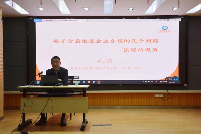 4月24日晚,原最高人民法院審判委員會副部級專職委員、第二巡回法庭庭長,現(xiàn)任最高人民法院咨詢委員會副主任、中國法學(xué)會案例法學(xué)研究會會長胡云騰教授受邀在我校徐匯校區(qū)文科實(shí)驗(yàn)樓502教室,以“關(guān)于全面推進(jìn)企業(yè)合規(guī)的幾個問題——法院的視角”為主題進(jìn)行講座。