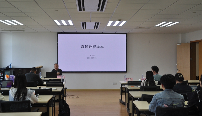 哲學與法政學院2022級政治學理論碩士研究生李智洋同學和2021級政治學理論碩士研究生張露同學分別從政府的制度成本,以及政府的必要成本和可能成本等議題請教桑玉成教授。桑玉成教授則從政府成本進一步細化、政府必要職能認定等角度進行解答和進一步闡釋。