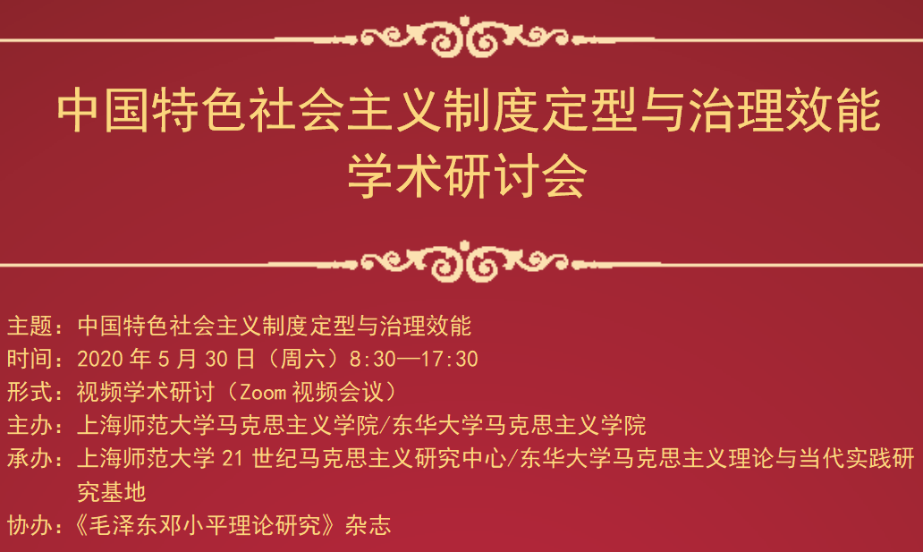 黨的十九屆四中全會通過了《中共中央關(guān)于堅持和完善中國特色社會主義制度 推進(jìn)國家治理體系和治理能力現(xiàn)代化若干重大問題的決定》,提出要構(gòu)建系統(tǒng)完備、科學(xué)規(guī)范、運(yùn)行有效的制度體系,并努力把我國的制度優(yōu)勢更好地轉(zhuǎn)化為國家治理效能。今年初突發(fā)的新冠肺炎疫情,是新中國成立以來在我國發(fā)生的傳播速度最快、感染范圍最廣、防控難度最大的一次重大突發(fā)公共衛(wèi)生事件,對我國的國家治理體系和治理能力來說是一次大考。在習(xí)近平同志為核心的黨中央的堅強(qiáng)領(lǐng)導(dǎo)下,全國人民團(tuán)結(jié)一心、眾志成城,經(jīng)過艱苦卓絕的努力,湖北保衛(wèi)戰(zhàn)、武漢保衛(wèi)戰(zhàn)取得決定性成果,全國疫情防控阻擊戰(zhàn)取得重大戰(zhàn)略成果,充分彰顯了中國的制度優(yōu)勢和治理效能,充分證明了中國共產(chǎn)黨和中國人民是經(jīng)得住任何風(fēng)浪考驗(yàn)的。在此背景下,5月30日,由上海師范大學(xué)馬克思主義學(xué)院、東華大學(xué)馬克思主義學(xué)院主辦,上海師范大學(xué)21世紀(jì)馬克思主義研究中心和東華大學(xué)馬克思主義理論與當(dāng)代實(shí)踐研究基地承辦、《毛澤東鄧小平理論研究》雜志協(xié)辦的“中國特色社會主義制度定型與治理效能”學(xué)術(shù)視頻研討會在騰訊會議平臺舉行。
